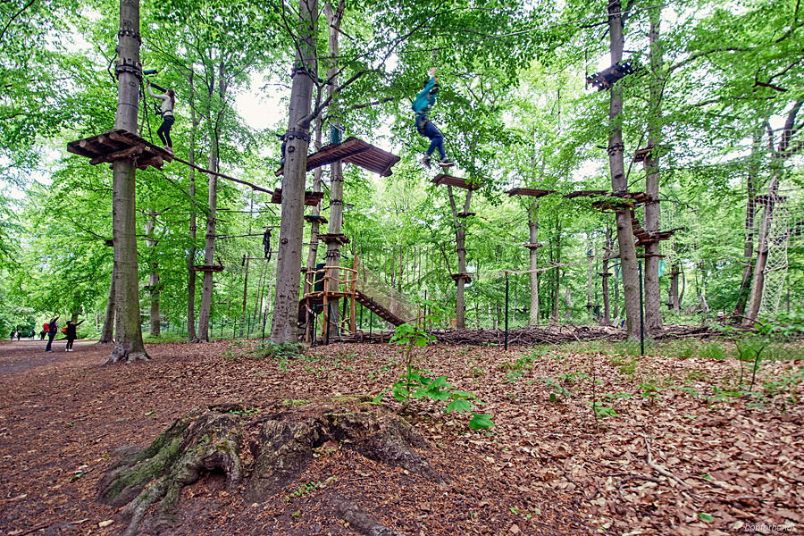 Kletterfreuden unterm pfingstgrünen Blätterdach im Volkspark Jungfernheide.