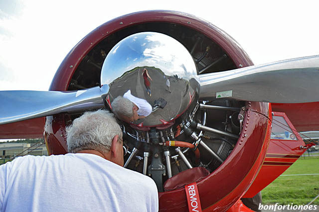 Wann kann man schon einen mehr als 70 Jahre alten Wasp-Junior-Sternmotor „in echt“ bewundern? Da lohnte es sich heute beim Flugplatzfest in Gatow schon mal ganz genau hinzuschauen. Neben den dort beheimateten Exponaten des Luftwaffenmuseums flogen eine ganze Reihe von Oldtimern auf dem ehemaligen Flugfeld der Briten ein. So auch diese knallrote Beech „Staggerwing“ mit dem Wespen-Triebwerk.