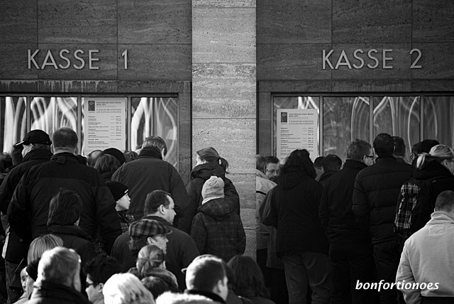 ... oder beim kollektiven Schlangestehen vor den Ticket-Schaltern.
