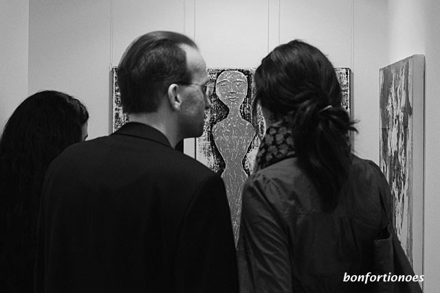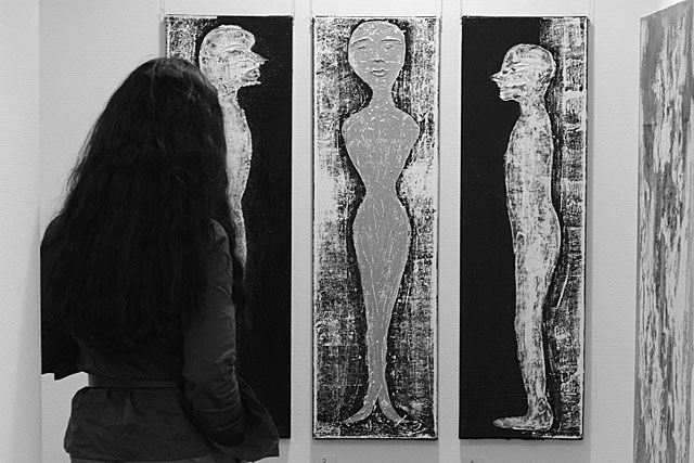 /0 Kommentare/in events /von Sven HochBeziehungsseismograph hat Iris Gess ihr Werk aus Acryl, Strukturpaste und Leinwand getauft, dass diese Betrachterin auf sich wirken lässt. Bezeichnenderweise ist im Zentrum des Triptychons das Abbild der Frau platziert, flankiert von zwei zu ihr gerichteten männlichen Gestalten.