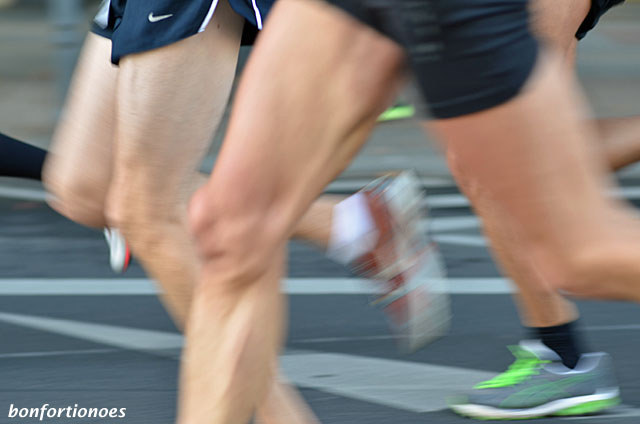 Laufen was die Beine hergeben, auch wenn es spätestens ab Kilometer 35 so richtig weh zu tun beginnt. Duchhalten und auf die Zähne beißen! Sonst war der ganze weite Weg umsont. Fotografiert beim heutigen Berlin Marathon etwa Kilometer vor dem Ziel.