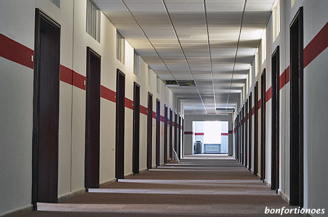 Diszipliniert in Reih und Glied haben Türen und Streifen in diesem Korridor Aufstellung bezogen. Kein Wunder, wurde der Bürotrakt doch einst militärisch genutzt. Das Foto habe ich im Hauptgebäude des früherein US-Hauptquartier in Dahlem „geschossen“.