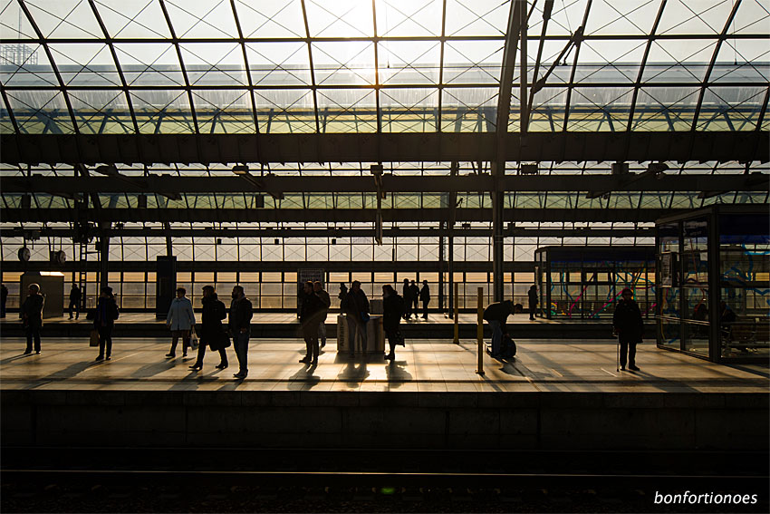 In Spandaus gläsernen Kathedrale der rollierenden Verzögerungen harren Gestalten unvorhersehbar ungleiche Minuten ihrer Bahnen, die da kommen oder nicht kommen mögen.