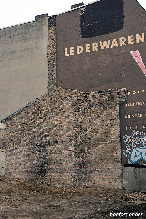 Nur der steinerne Abdruck in der Brandwand des Nachbarhauses zeugt letzten alten Bauernhauses in der Breite Straße in Berlin-Schmargendorf. Es wurde im 1. Quartal dieses Jahres abgerissen, um Platz zu machen für ein Neubauprojekt.