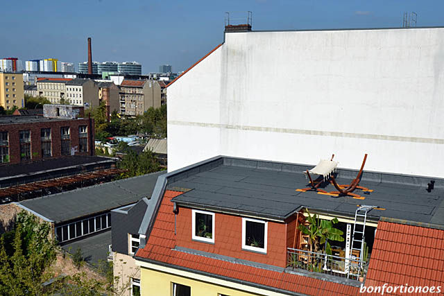 An der ausladenden Bananenstaude vorbei. Eine schmale Leiter hinauf. Nur noch wenige Schritte hinein ins Glück. Hinein in die Hängematte. Ein kleines Berliner Paradies. Irgendwie weckte es Assoziationen an Karlson auf dem Dach, oder?
