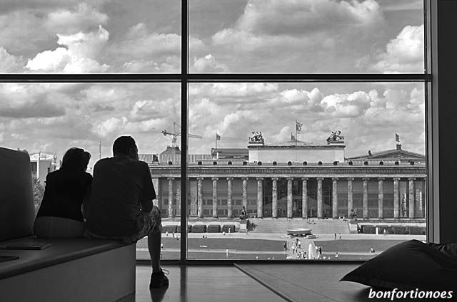Wie dieses Paar dürften auch Wilhelm und Auguste Viktoria die herrliche Aussicht auf Lustgarten und Altes Museum genossen haben, wenn sie denn mal die Muße fanden, aus den Fenster des Nordflügels ihres Berliner Schlosses zu schauen. An dem wundervollen Blick aus den oberen Etagen der Humboldt-Box kann man sich übrigens auch dann berauschen, wenn man der in diesem futuristischen Kasten propagierten Wiederauferstehung des einstigen preußischen Protzbaus ansonsten nicht viel abgewinnen kann.