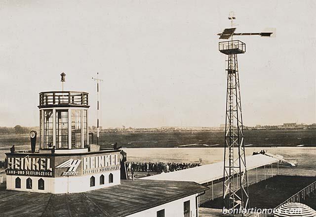Kein schnöder Luftsack oder spießiger Wetterhahn: der für die sichere Durchführung von Starts und Landungen so wichtige Windrichtungsgeber war in den Anfangsjahren des Flughafens Tempelhof als formschöner Flieger gestaltet. Die historische Aufnahme von dem eleganten Instrument entstandt um 1928. (Das Foto stammt aus meiner privaten Sammlung).