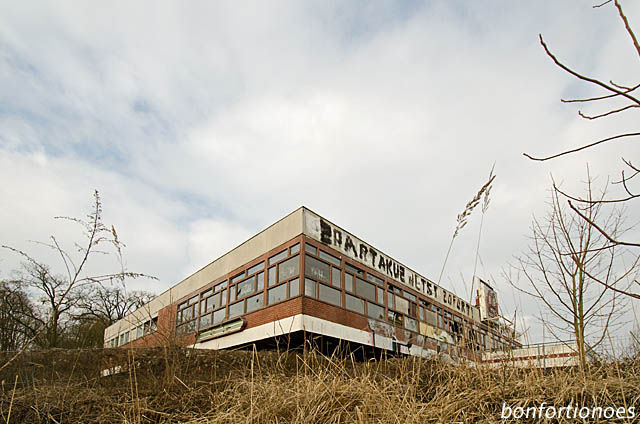 Schon jetzt ist das Gebäude in einem bemitleidenswerten Zustand. Das liegt nach meinem Empfinden zum einen an der Konzeptlosigkeit und Engstirnigkeit der Potsdamer Stadtplaner. Die scheinen friderzianische Bauten besonders zu lieben und lassen solche „malerischen“ Bauten – falls nicht mehrvorhanden- zur Not auch einfach wieder neu aus dem Boden zu stampfen. „Aktiver Denkmalschutz“ könnte man sagen, wenn nicht gleichzeitig architektonisch mindestens ebenso so interessante aber nicht in das Weltbild des gemeinen Spießbürgers passende Bauwerke wie das „Minsk“ links liegen gelassen würden. Dann ist da zum anderen noch der dumpfe Vandalismus, den das geistige und moralische Prekariat der hiesigen Eingeborenen gerne an leerstehenden Häusern auslebt. So bleibt die Zukunft für das „Minsk“ bleibt trotz einiger interessanten Visionen höchst ungewiss.