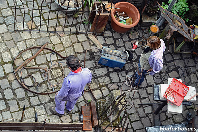 Irgendetwas fehlt noch an der eisernen Visage. Kritisch mustern die beiden Künstler ihre neueste Skulptur. Mund, Nase, Auge – alles schon dran an dem Schrottgesicht. Doch halt, wo ist das zweite Sehorgan? Oder ist es am Ende gar kein Antlitz aus altem Eisen, das da im Schatten der mächtigen Mauern der alten Spandauer Zitadelle das Licht der Welt erblickt?