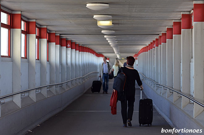 Ständiges Kommen und Gehen in jenem endlosen Korridor, der das Hautgebäude des Flughafen Tegel mit dem provisorischen Terminal C verbindet. Noch. Spätestens am dritten Juni verstummt hier allerdings das sonore Surren der unzähligen Trolleys für immer.